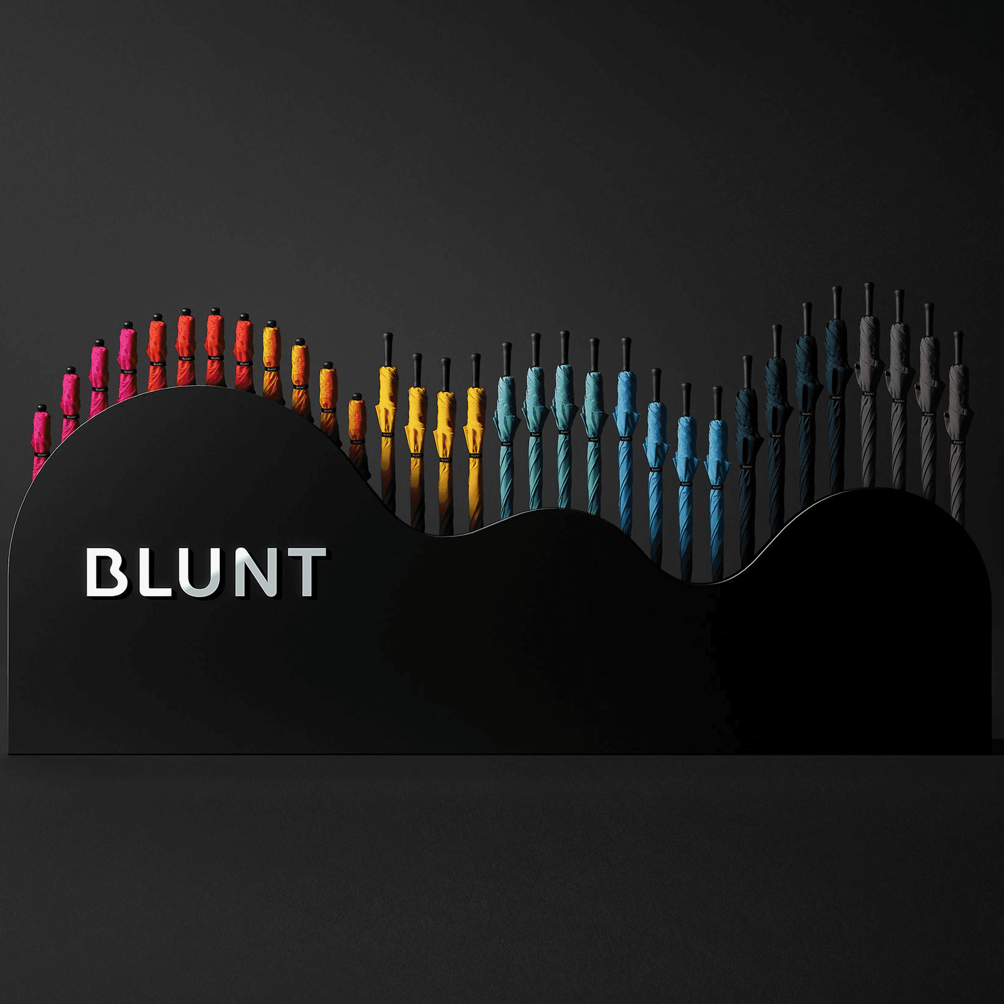 For Blunt, we reframed a beloved Aotearoa innovation into a lifestyle brand with global appeal, building the brand around its iconic umbrellas. Rooted in founder Greig Brebner’s design journey, our guiding idea of 'Engineering Joy' links technical innovation with emotional resonance. A new wordmark and 'B' symbol mirror the umbrellas’ curves and express principles of reduction, beauty, confidence and joy. Sustainable packaging and considered touchpoints elevate the product beyond a sales portal, while lifestyle photography finds beauty in chaos, turning vulnerable moments into confident experiences.